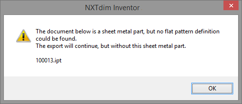 Before the command can be used, every ‘Sheet Metal’ part needs to have a ‘Flat Pattern’. Parts without a Flat Pattern cannot be published. An overview of these parts is given before publishing (see image).