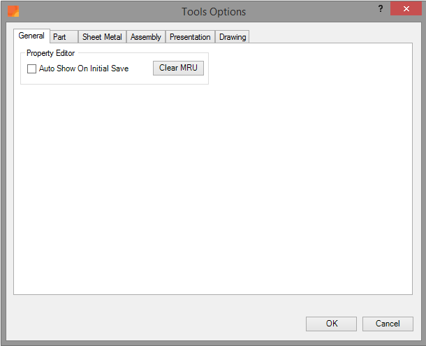 With this option enabled, the ‘Property Editor’ is automatically displayed on first save of the Inventor Document.