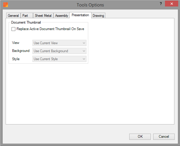 ‘Replace Active Document Thumbnail On Save’ enables you to automatically replace the thumbnail of an Inventor Presentation document. By default, Inventor saves a thumbnail within the document. This thumbnail represents the state of the document at the moment of saving. Settings, such as background color, work features, orientation etc. hence determine the appearance of the thumbnail. It may be desired that in Windows Explorer or Autodesk Vault a representative image is shown with for example a standardized background color, all work features hidden and a full isometric view of the presentation.